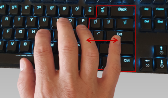 Your arms are free to move with Typeware hand tracking. Hands are not bound to the desk, the Elbow near the core of the body. Mouse function does also work when choosing control the display in a more classic fashion, with the hand moving horizontally over the table.