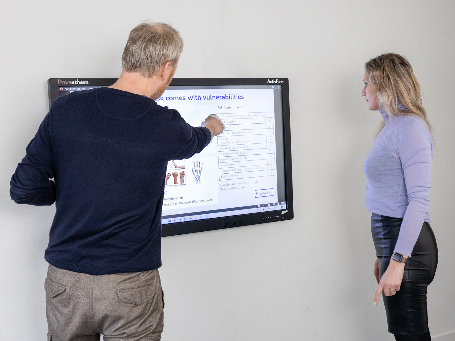 With the Typeware device working as a typing remote, people can comfortly work togethor at the same screen, whether sitting or standing